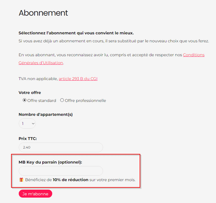 - Pour votre filleul : 10 % de réduction sur sa première facture en renseignant votre clé lors de son inscription.